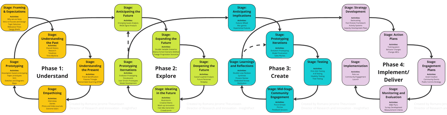 Anticipate & Tweak – Stress-test prototypes using foresight tools such as Futures Wheels and immersive roleplays. Challenge assumptions, refine your solutions, and gain deeper community insight.
