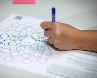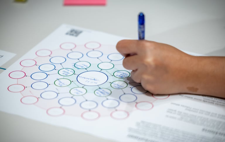 A worksheet, based on Jerome Glenn's Futures Wheel to help with anticipating the effects of a decision or event.