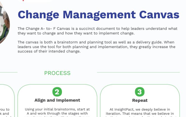 Use this canvas to clearly create a change management plan to implement your new direction or initiatives.