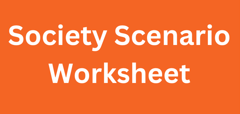 A scenario worksheet that helps guide thinking on the possible future scenarios of societies.